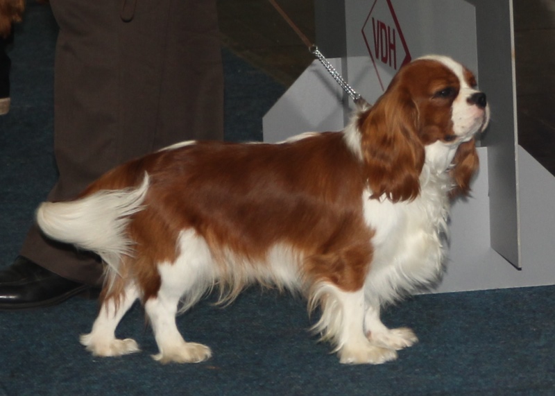 Jaimie erlief sich auf der Bundessiegerausstellung in Dortmund in der Jugendklasse ein VORZÜGLICH von 11 Rüden / davon 9 blenheim. Wir danken der englichen Rassespezialistin Mrs. Carol Jenkins (Hollambrie UK) für die tolle Bewertung von unserem Super JAIMIE.